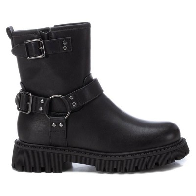 BLISSFUL STEP Platform Block Heel Booties with Zipper Dressy Combat Boots for Women