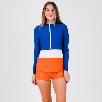 Calypsa Womens Half-Zip Color Block Rash Guard