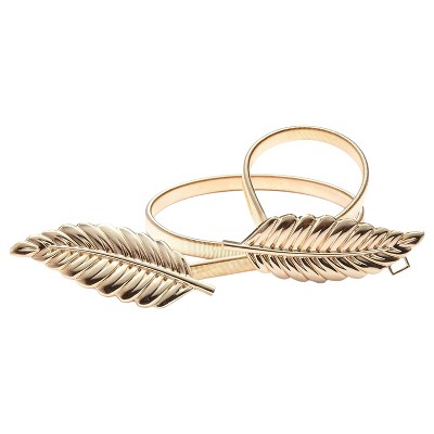 Alilang Women's Twisted Leaf Pattern Metal Waist Belt with Adjustable Chain Closure 45.5in - Gold