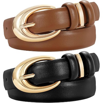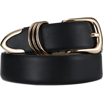Pack 3 Women Belts for Jeans Pants, Fashion Gold Buckle Leather Belts