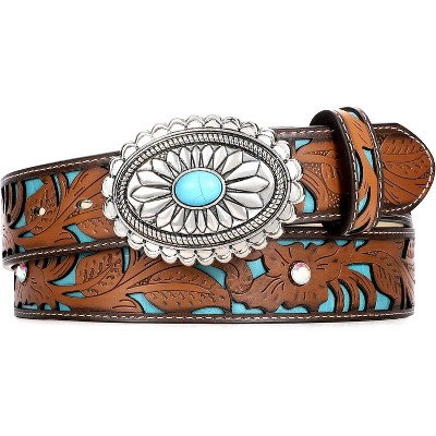 Vintage Country Belts For Cowgirl Jeans Dresses Ladies Concho Belt With Turquoise Buckle