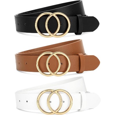 3 Pack Women Waist Belts for Jeans Pants Dresses, Ladies Belt with Double O-Ring Gold Buckle
