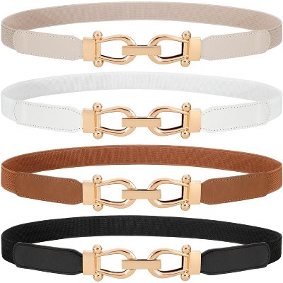 4 Pack Women Skinny Elastic Waist Belt Gold Buckle Stretchy for Jeans Dress