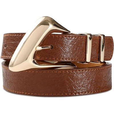 Women's Brown Belt Trend Belt with Gold Buckle Fashion Leather Waist Belt for Jeans Pants