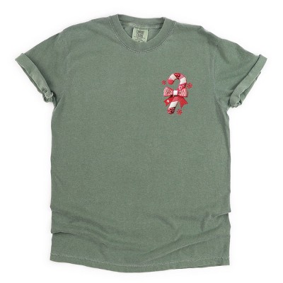 Candy Cane Bow Patchwork Print - Women's Garment Dyed Graphic T-Shirt