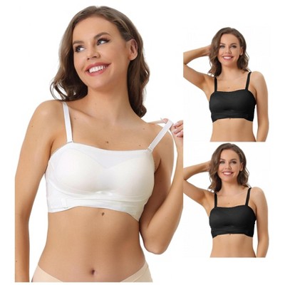 Allegra K Women's Lace Trim Front Cross Lightly Adjustable Straps Push-up Bralettes 2 Packs