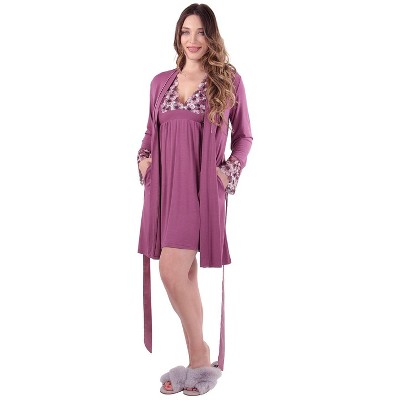 Memoi Women's Enchanted Romance Floral Accent Embroidered Robe