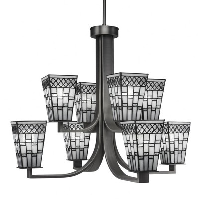 Toltec Lighting Apollo 8 - Light Chandelier in Graphite with 5" Square Pewter Art Glass Shade