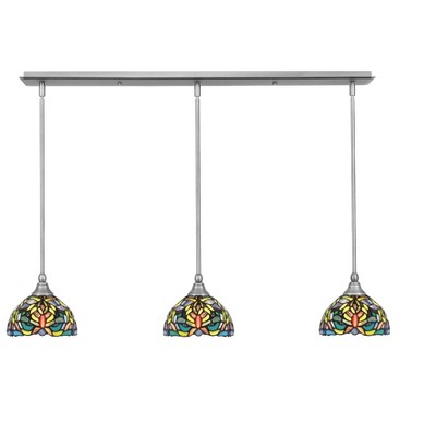 Toltec Lighting Any 3 - Light Chandelier in Brushed Nickel with 7" Kaleidoscope Art Glass Shade