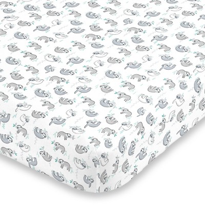 NoJo Super Soft Grey, White and Aqua Sloth Fitted Crib Sheet