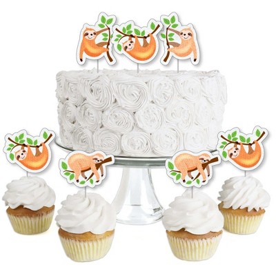 Big Dot of Happiness Let's Hang - Sloth - Dessert Cupcake Toppers - Baby Shower or Birthday Party Clear Treat Picks - Set of 24