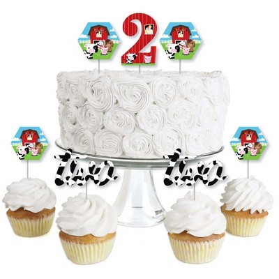 Big Dot of Happiness 2nd Birthday Farm Animals - Dessert Cupcake Toppers - Barnyard Second Birthday Party Clear Treat Picks - Set of 24