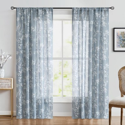 LISM Linen Floral Patterned Light Filtering Curtains,2 Panels