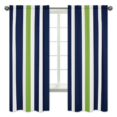 Sweet Jojo Designs Window Curtain Panels 84 in. Stripe Blue Green Grey