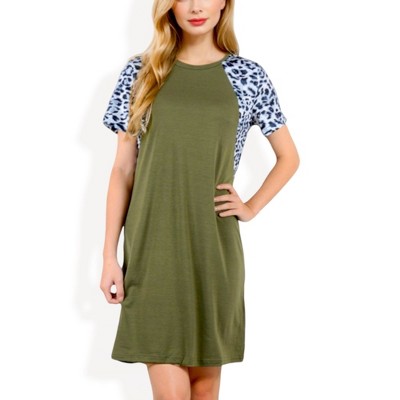 Anna-Kaci Women's Short Sleeve Leopard Print Raglan T-Shirt Dress with Relaxed Fit