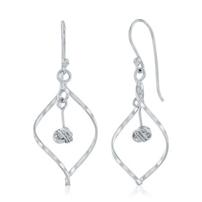 Bella Silver Sterling Silver, Twisted Marquise Shaped w/ Knot Earrings - Silver