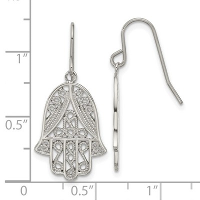 Chisel Stainless Steel Polished and Textured Hamsa Dangle Earrings Shepherd Hook