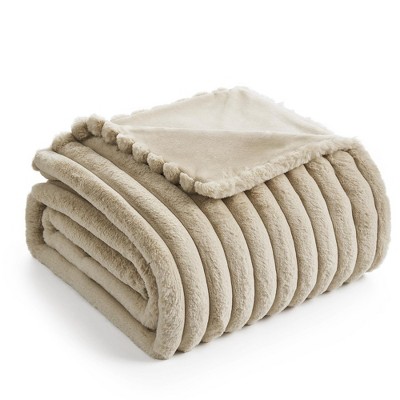Amelie Home Soft Faux Fur Throw Blanket, Faux Rabbit Fur Striped Throw Blanket