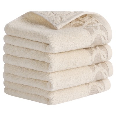 REGALWOVEN 4 Pcs Floral Pattern Cotton Bathroom Hand Towel
