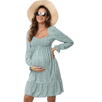 Coolmee Women's Maternity Long Sleeve Dresses Fall Square Neck Smocked Ruffle A Line Flowy Midi Dress