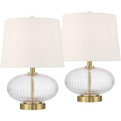 360 Lighting Darrah 19" High Small Mid Century Modern Accent Table Lamps Set of 2 USB Port Clear Glass Gold Brass Finish Living Room Charging