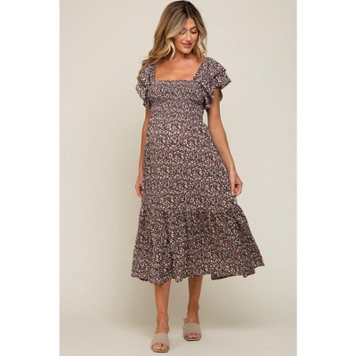 Pinkblush Brown Knit Contrast Top Satin Maternity Midi Dress