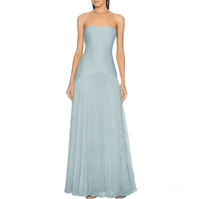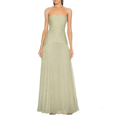 Women's Strapless Pleated Maxi Formal Dress Evening Gown
