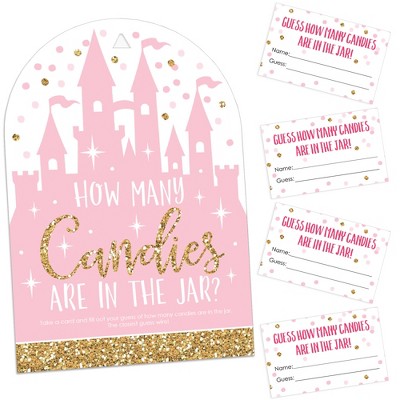 Big Dot of Happiness Little Princess Crown - How Many Candies Pink Baby Shower or Birthday Party Game - 1 Stand and 40 Cards - Candy Guessing Game