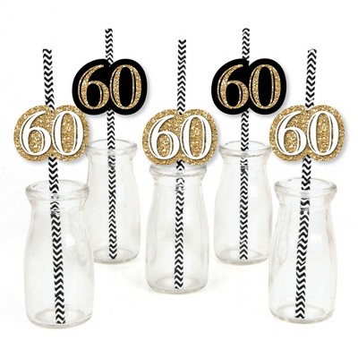 Big Dot of Happiness Adult 60th Birthday - Gold - Paper Straw Decor - Birthday Party Striped Decorative Straws - Set of 24