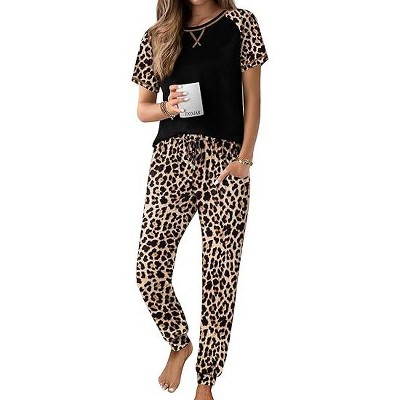 CTM Women's Short Sleeve Leopard Print Pajama Set