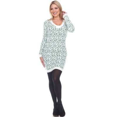 Women's Angora Leopard Print Sweater Dress - White Mark