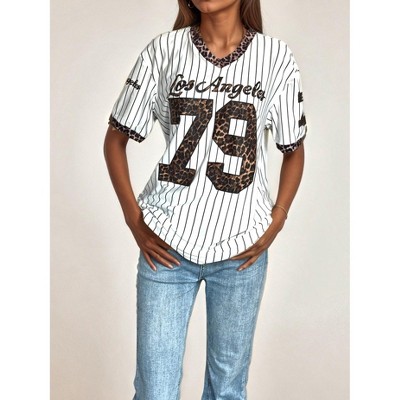 Women's Striped Baseball Jacket Leopard Print 79 Number Los Angeles Fashion Top