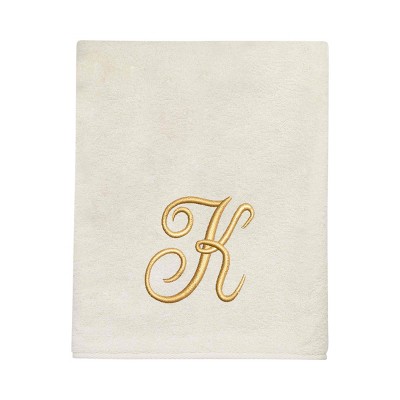 Avanti Ivory with Gold Script Monogram Bath Towel Letter K