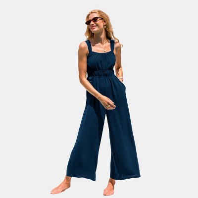Women's Navy Blue Smocked Jumpsuit for Effortless Summer Style - Cupshe