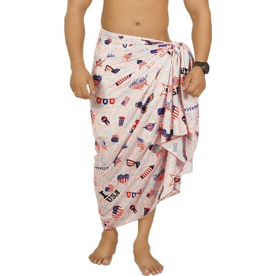 LA LEELA Men's Patriotic 4th of July USA Flag Swimwear Summer Sarong Swim Trunk Pareo Beach Wrap One Size Stripes Red