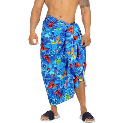 HAPPY BAY Men's Sarong Swimwear Beach Cover Ups One Size Lapis Parrot