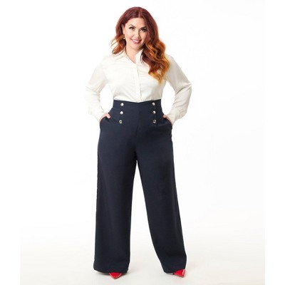 - navy wide leg pants