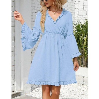 Womens Deep V Neck Mini Dress Long Sleeve Elastic Waist A Line Casual Wrap Midi Dress