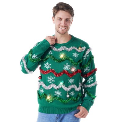 Joyfy Ugly Christmas Sweater, Light Up Ugly Christmas Sweater for Men Christmas Party, Green Xmas Pullover Tops