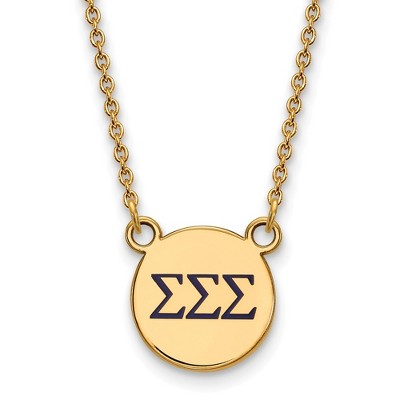 Black Bow Jewelry 14k Yellow Gold Plated Sterling Silver Sigma Sigma Sigma Greek Life Enameled Navy Letters Small Disc Necklace 18 Inch