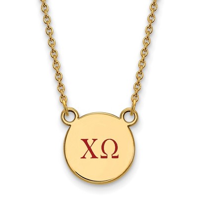 Black Bow Jewelry 14k Yellow Gold Plated Sterling Silver Chi Omega Greek Life Enameled Red Letters Small Disc Necklace 18 Inch