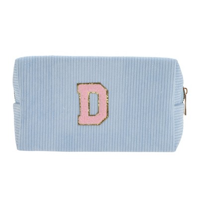 Unique Bargains Corduroy Rectangular Letter Makeup Bag Sky Blue 1 Pc