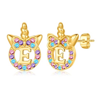 Turandoss 18K Gold Initial Unicorn Earring Gifts for Girls Women - S925 Sterling Silver Post Diamond Stud Earrings Hypoallergenic, Christmas Gifts