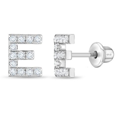 Girl's Cubic Zirconia Letter Initial Screw Back Sterling Silver Earrings - In Season Jewelry