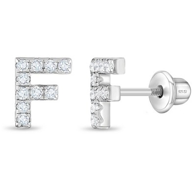 Girl's Cubic Zirconia Letter Initial Screw Back Sterling Silver Earrings - In Season Jewelry