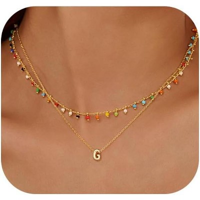 SmallRig Beach Style Initial Necklace Colorful Beaded Layered Choker Jewelry