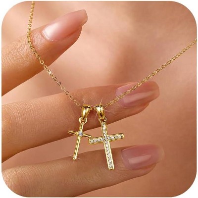 SmallRig S925 Sterling Silver Heart Necklace for Women, 14K Gold Plated CZ Infinity Double Cross Star Pendant Bead Chain Jewelry Gift