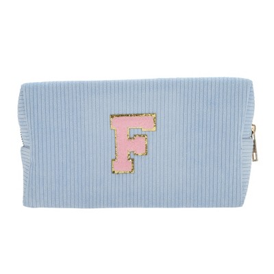 Unique Bargains Corduroy Rectangular Letter Makeup Bag Sky Blue 1 Pc