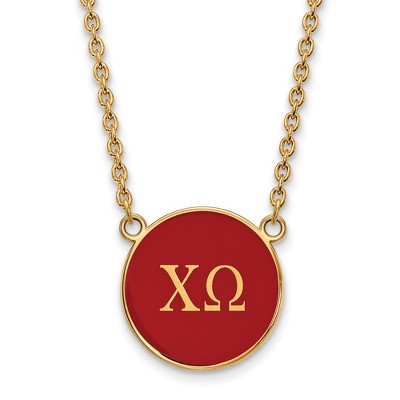 Black Bow Jewelry 14k Yellow Gold Plated Sterling Silver Chi Omega Greek Life Enameled Letters Disc Necklace 18 Inch
