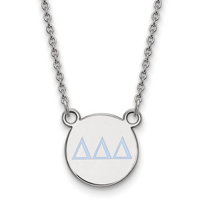 Black Bow Jewelry Sterling Silver Delta Delta Delta Greek Life Enameled Blue Letters Small Disc Necklace 18 Inch
